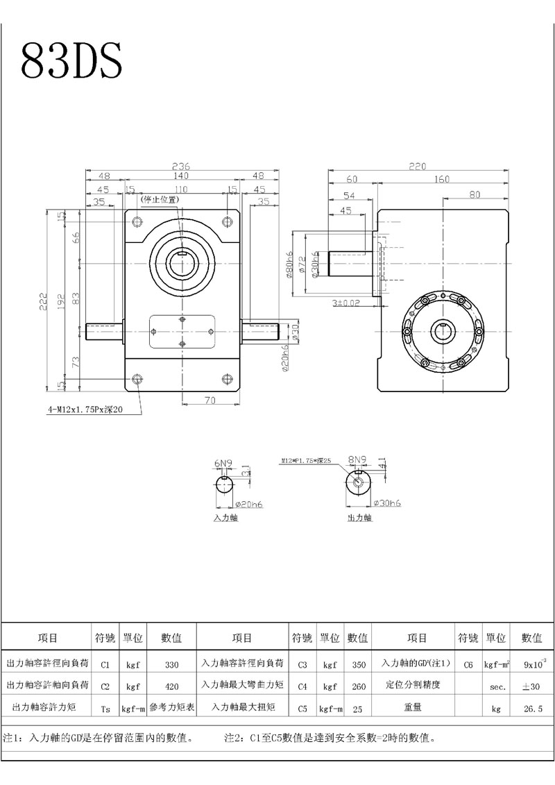 此系列機(jī)種為典型傳統(tǒng)式心軸造型,其安裝配件之加工安裝配合齒輪、聯(lián)軸器或聯(lián)軸盤(pán),需特別注意孔徑公差(+0.015/-0)及鍵槽公差(+0.015/-0),其適用場(chǎng)合在輸送帶驅(qū)動(dòng)、齒輪驅(qū)動(dòng)、無(wú)間隙聯(lián)軸器驅(qū)動(dòng)居多。