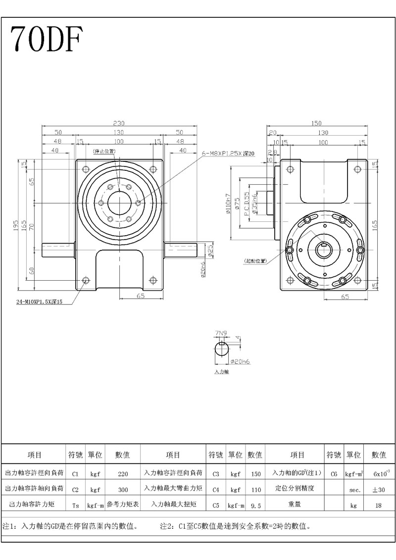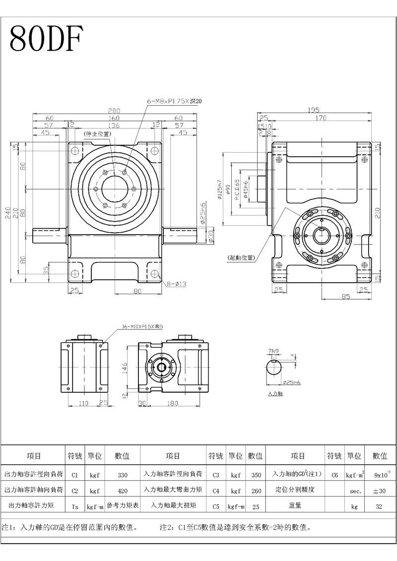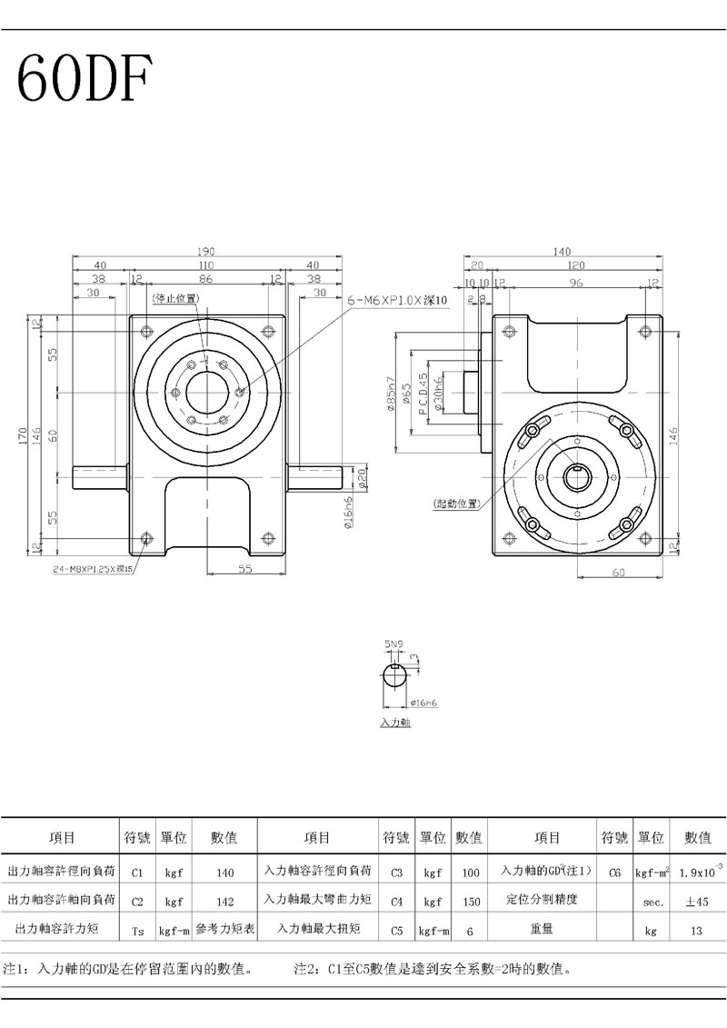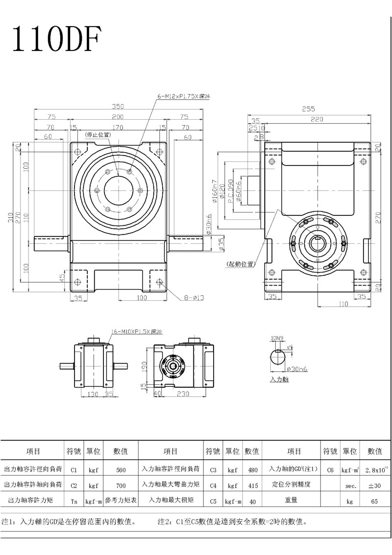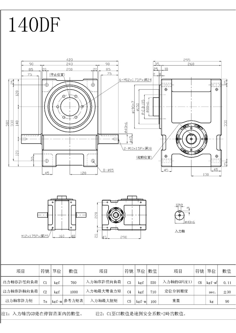 此機(jī)種具有重負(fù)荷特性,可承受較大之垂直徑向或軸向壓力,為本公司專屬設(shè)計(jì)工程師群,經(jīng)歷多年針對(duì)盤(pán)式結(jié)構(gòu)需要設(shè)計(jì)而成,其輸出軸為面盤(pán)式設(shè)計(jì),有凸緣中心、盤(pán)面螺孔、定位、銷控,固定面寬大,可使平面度