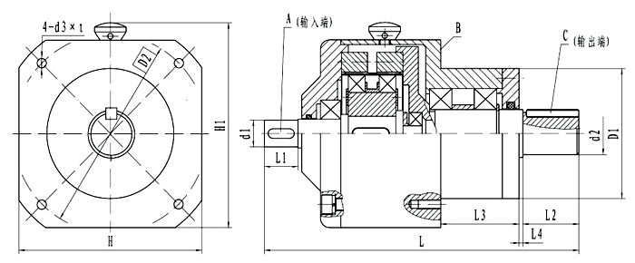 2、B面為安裝基準(zhǔn)面,D1為安裝基準(zhǔn)孔;減速器安裝時(shí),注意保持透氣孔朝上(其他詳見(jiàn)產(chǎn)品說(shuō)明)