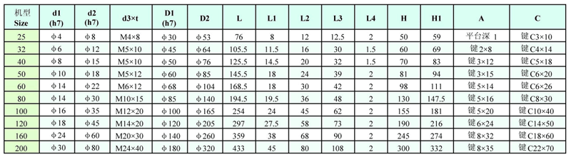 ?注:1、A欄:25機(jī)型為一平臺(tái),其余的鍵按GB/T1096-1979選用