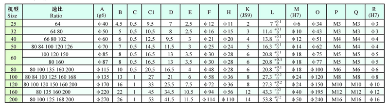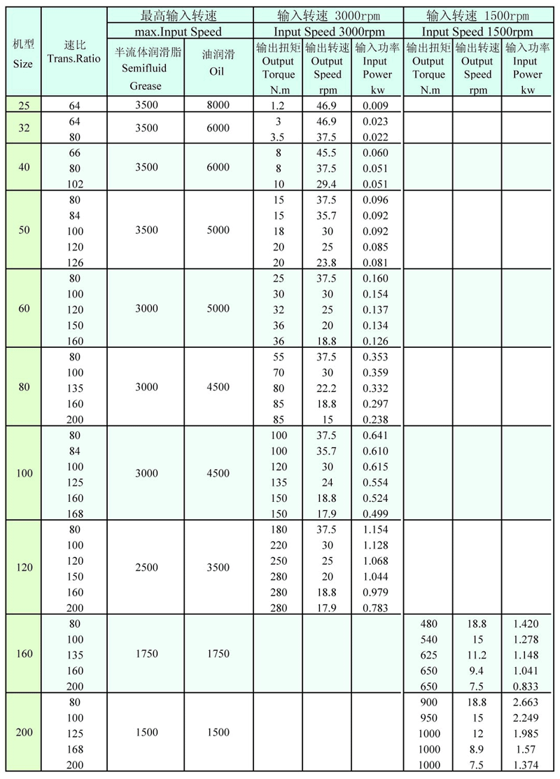? XB3扁平式諧波傳動減速器的規(guī)格和額定數(shù)值表