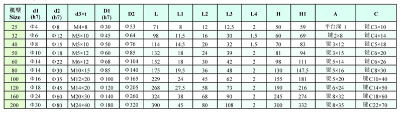 ?注:1、A欄:25機型為一平臺,其余的鍵按GB/T1096-1979選用